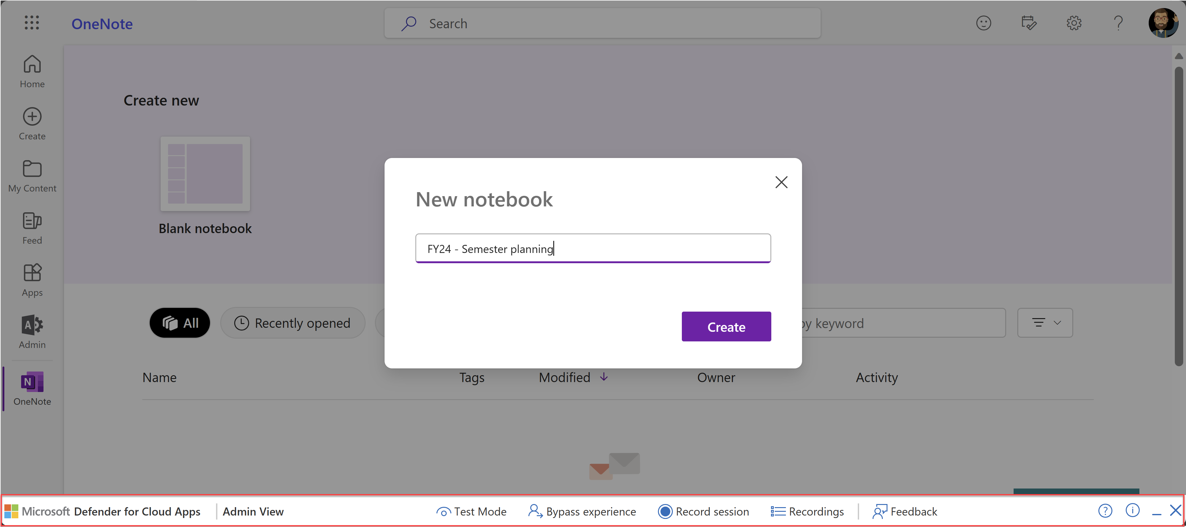 3. When you finish recording the scenario, make sure to select Stop recording in the Admin View toolbar.
