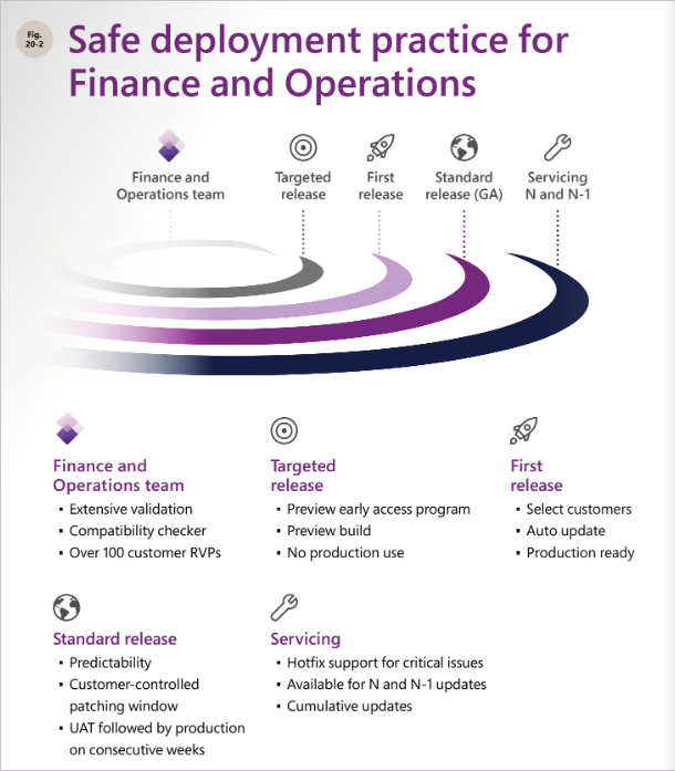 When Microsoft rolls out major and minor releases, Dynamics 365 follows a series of progressive, staged deployments across the world to follow safe deployment practices. At each stage, we collect feedback and check quality for continuous improvement.