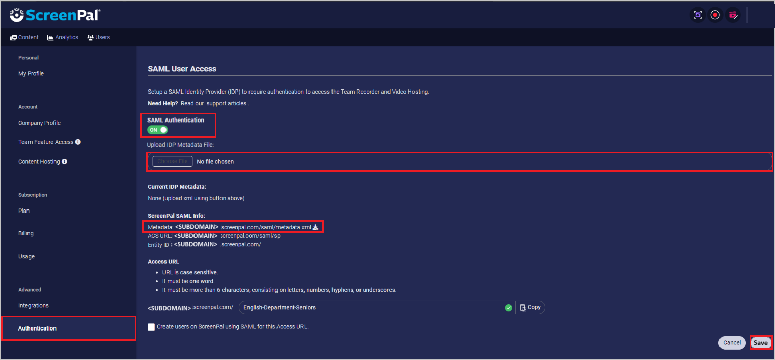 - Configure ScreenPal SSO - to configure the single sign-on settings on application side.
