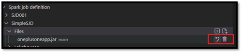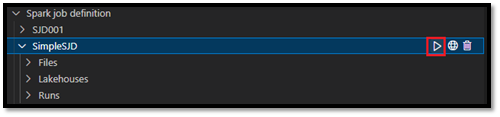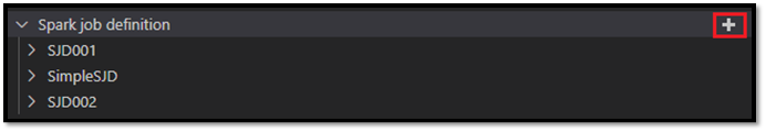 กระบวนการคําขอและชื่อของข้อกําหนดงาน Spark ที่สร้างขึ้นใหม่ของคุณจะปรากฏขึ้นภายใต้โหนดรากของ Spark Job Definition ใน VS Code Explorer ภายใต้โหนดชื่อข้อกําหนดงาน Spark คุณจะเห็นโหนดย่อยสามรายการ: