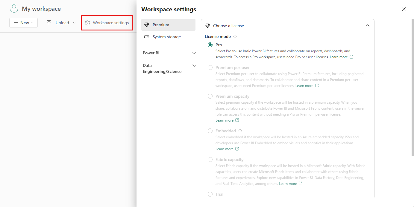 ไปยังพื้นที่ทํางานของคุณและเลือก การตั้งค่าพื้นที่ทํางาน