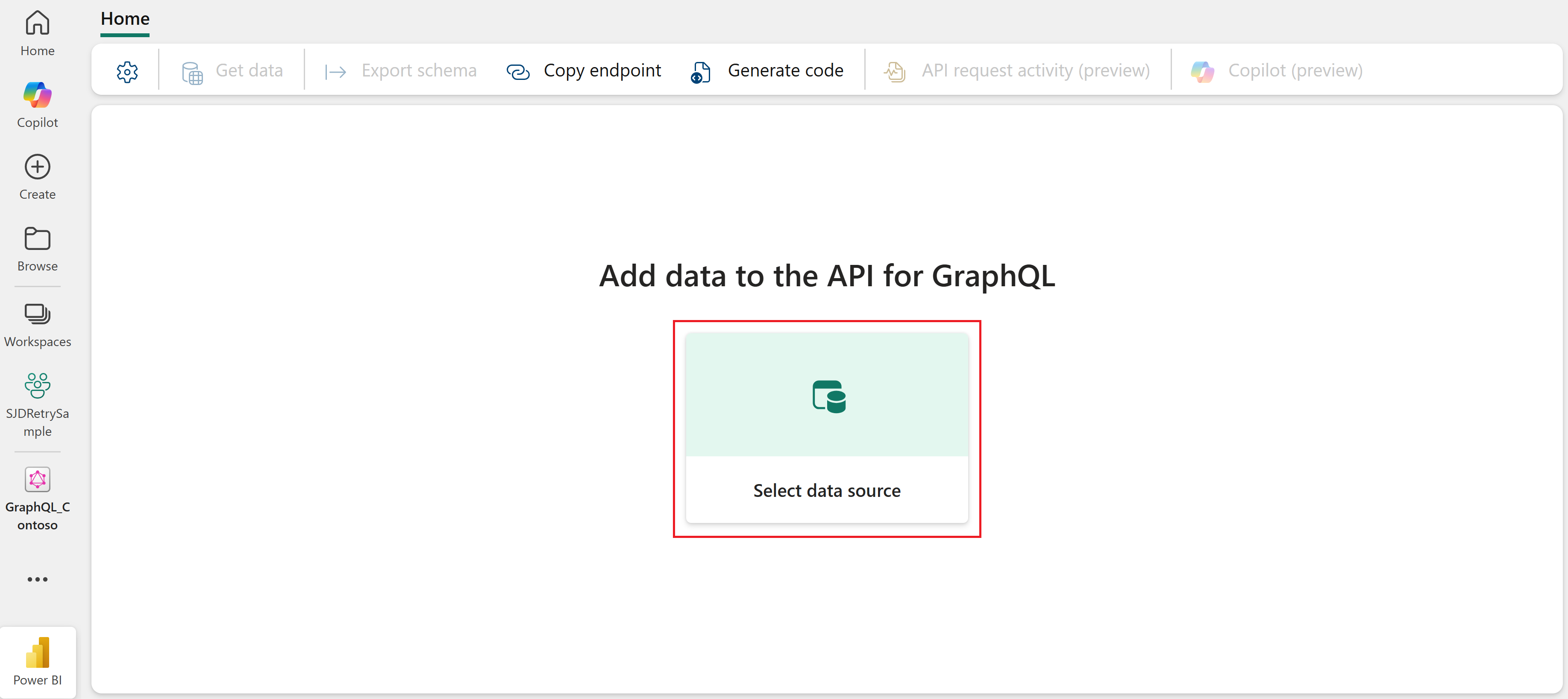 2. ภายใต้ เพิ่มข้อมูลไปยัง API สําหรับ GraphQL ให้เลือกไทล์ เลือกแหล่งข้อมูล