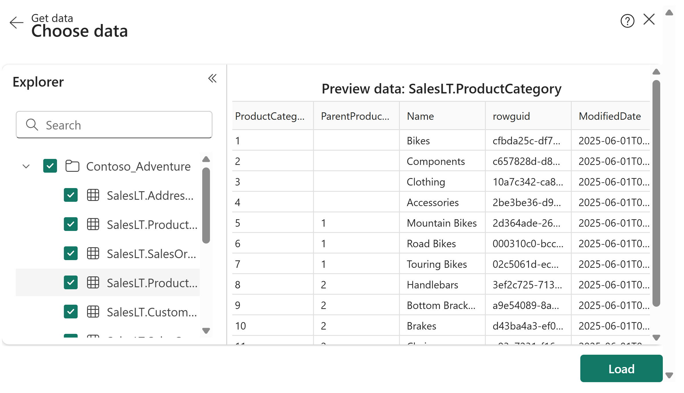 • ในคู่มือนี้ เราใช้ตําแหน่งข้อมูลการวิเคราะห์ SQL ของ AdventureWorks ที่เชื่อมโยงกับฐานข้อมูลมิเรอร์เป็นแหล่งข้อมูลตัวอย่าง เมื่อต้องการรับข้อมูลตัวอย่าง AdventureWorks โปรดดู โหลดข้อมูลตัวอย่าง AdventureWorks ในฐานข้อมูล SQL ของคุณ