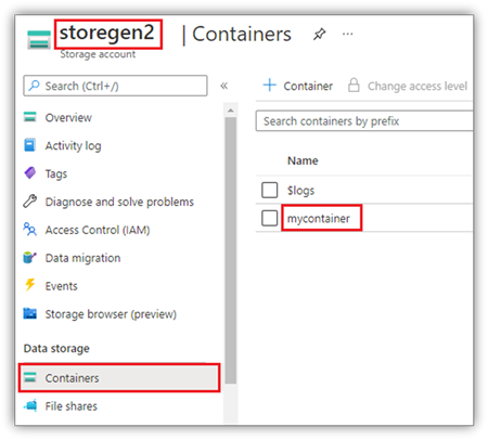 ตัวอย่างนี้ถือว่า คุณมีบัญชี Data Lake Storage รุ่น2 หนึ่งบัญชีที่ชื่อว่า storegen2 และบัญชีมีคอนเทนเนอร์หนึ่งชื่อว่า mycontainer ที่คุณต้องการติดตั้ง /test ลงในเซสชัน Spark ของสมุดบันทึกของคุณ