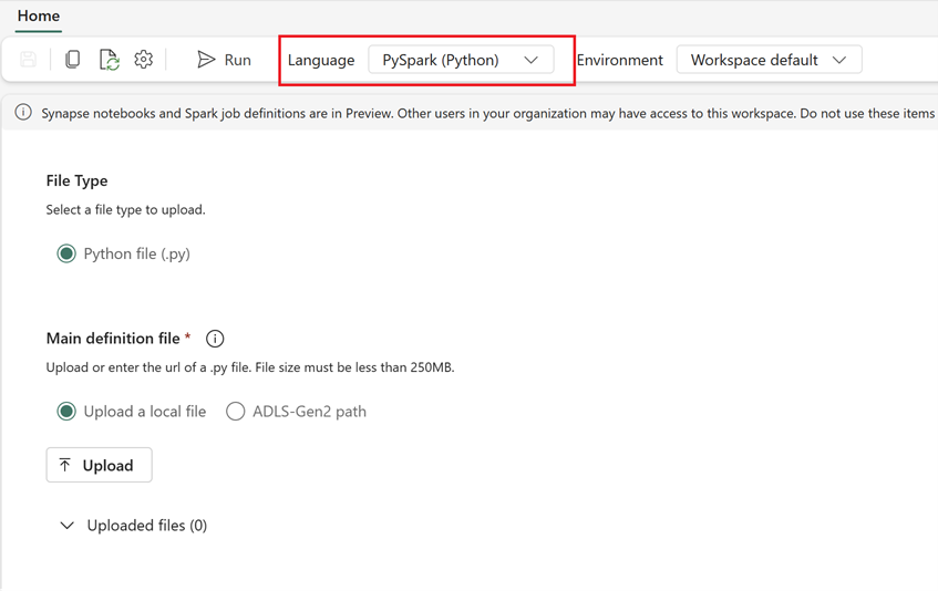 - ใน Synapse Studio ให้เปิด ข้อกําหนดงาน Spark
