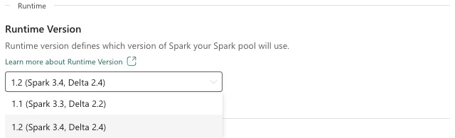 สิ้นสุดการสนับสนุนสําหรับ Microsoft Fabric Runtime 1.2 ได้รับการประกาศ Microsoft Fabric Runtime 1.2 จะถูกยกเลิกและปิดใช้งาน 31 มีนาคม 2026 เราขอแนะนําให้อัปเกรดพื้นที่ทํางาน Fabric และสภาพแวดล้อมของคุณเพื่อใช้ Runtime 1.3 (Apache Spark 3.5 และ Delta Lake 3.2)