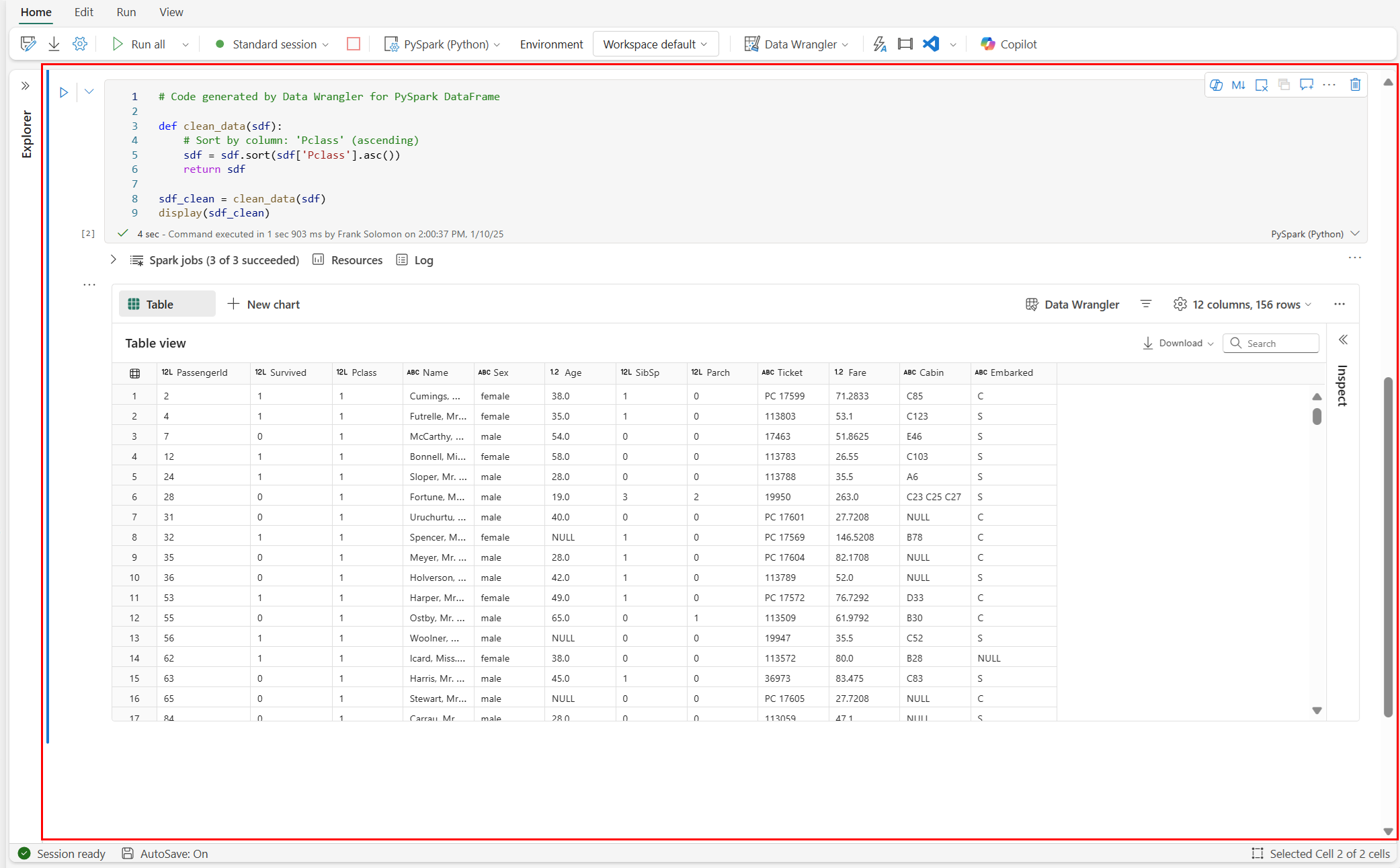 เปิดใช้งาน Data Wrangler ด้วย Spark DataFrame