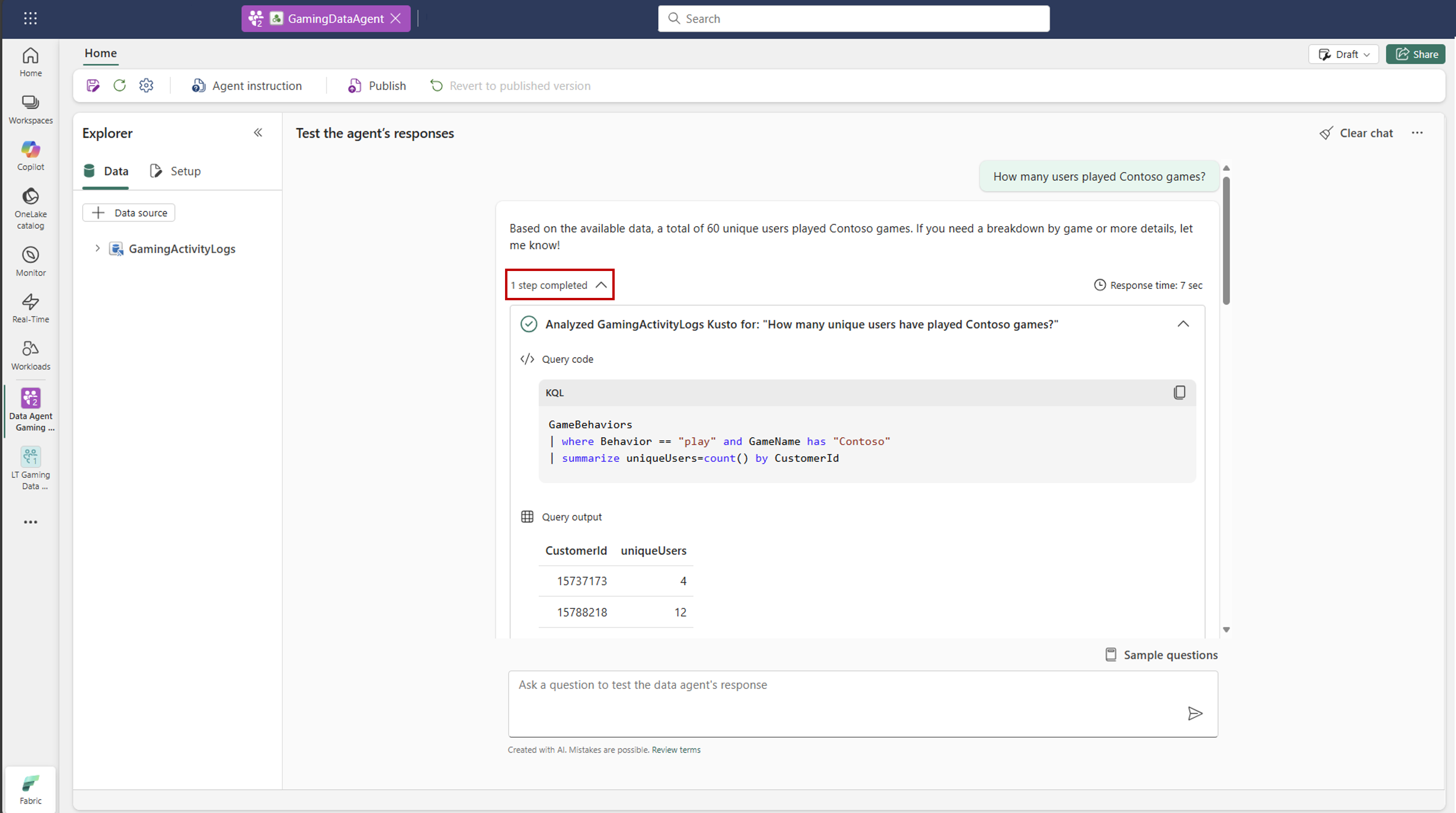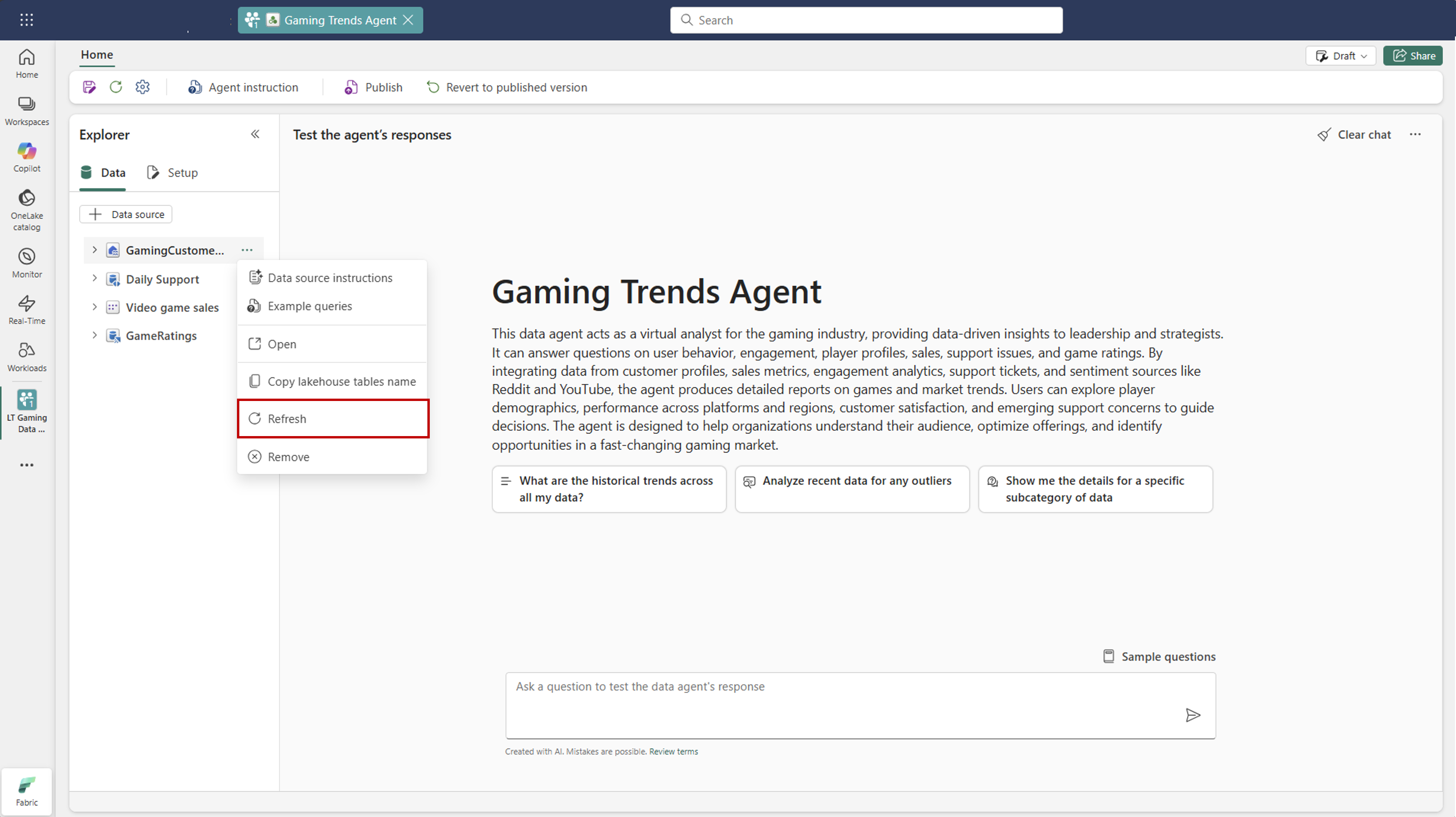 กระบวนการนี้ตรงไปตรงมาและคุณสามารถเริ่มทดสอบทรัพยากรของตัวแทนข้อมูล Fabric ได้ในไม่กี่นาที
