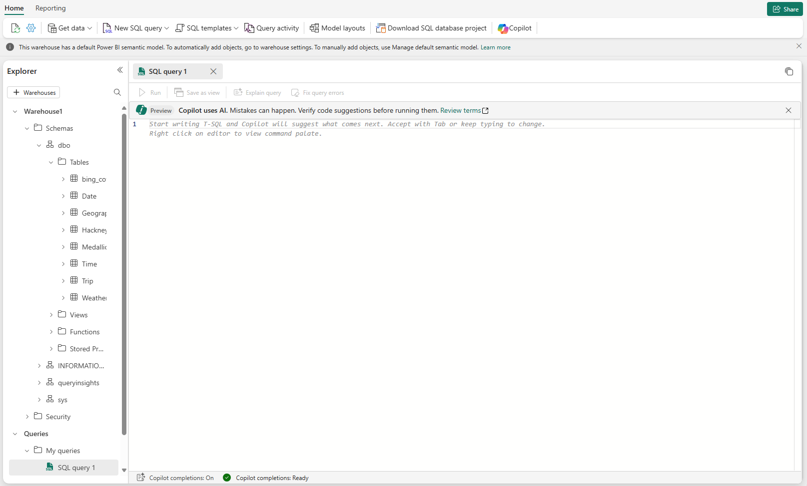 - ใช้ตัว แก้ไขคิวรี SQL ในพอร์ทัล Microsoft Fabric