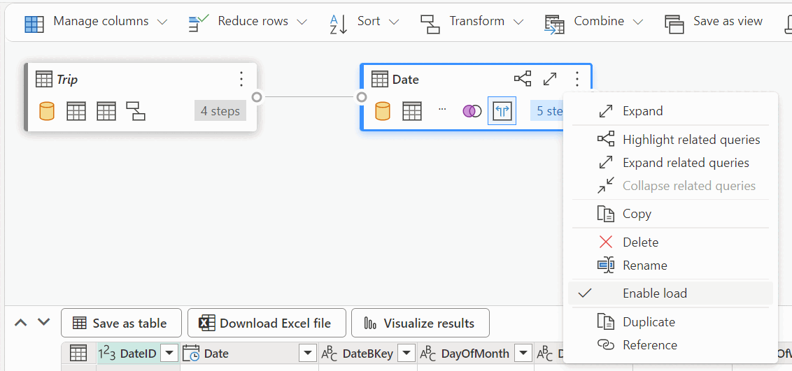 ตัวแก้ไขคิวรีวิชวลในพอร์ทัล Fabric