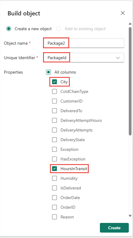 ในตอนนี้ก็ถึงเวลาสร้างวัตถุของคุณเองแล้ว ในส่วนนี้ ลบวัตถุแพคเกจ จากนั้นสร้างใหม่เพื่อติดตามสถานะของแพคเกจในการส่งต่อ ซึ่งจํานวนชั่วโมงในการจัดส่งมากกว่า 25