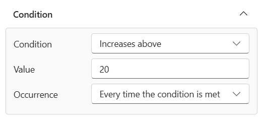 ในส่วน เงื่อนไข คุณจะเห็นเงื่อนไขของกฎเพื่อตรวจสอบอุณหภูมิที่ สูงกว่า 20 องศาเซลเซียส