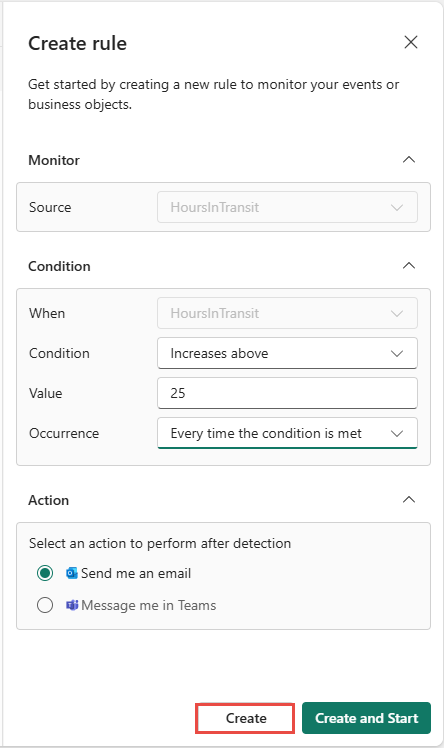 ใช้กฎเพื่อระบุค่าเหตุการณ์ที่คุณต้องการตรวจสอบ เงื่อนไขที่คุณต้องการตรวจหา และการดําเนินการที่คุณต้องการให้ Fabric Activator ดําเนินการ