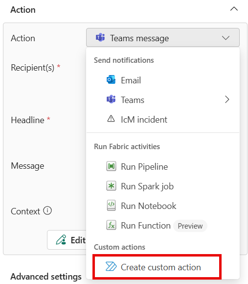 การดําเนินการที่กําหนดเอง: เมื่อต้องการกําหนดค่าการแจ้งเตือนเพื่อเรียกใช้การดําเนินการแบบกําหนดเองเมื่อตรงตามเงื่อนไข ให้ทําตามขั้นตอนเหล่านี้: