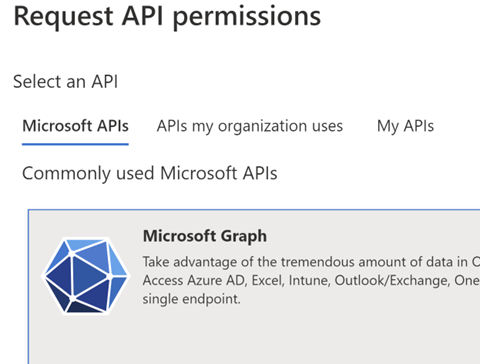 • API Permissions > Add a permission > Microsoft APIs > Microsoft Graph > Delegated Permissions