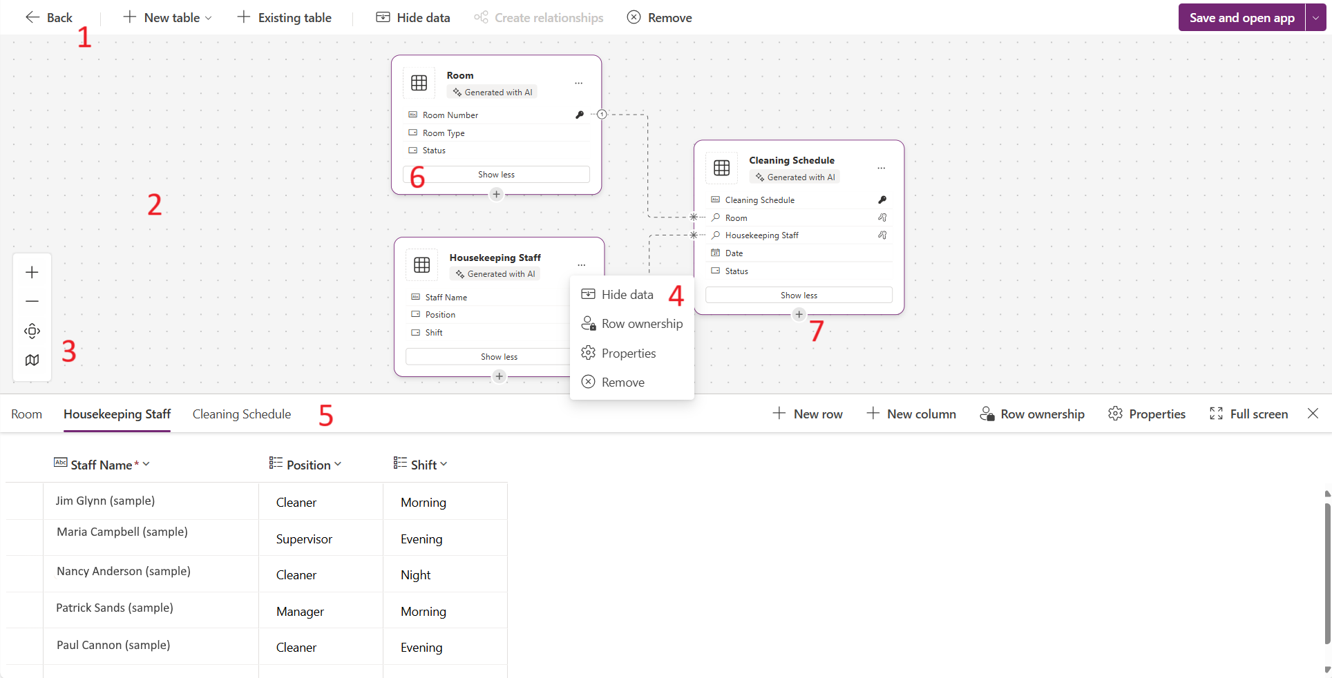 ใช้ประสบการณ์การใช้งานพื้นที่ทํางานข้อมูลที่คุณสร้างตาราง กําหนดค่าความสัมพันธ์ของตาราง และสามารถดูไดอะแกรมของข้อมูลของคุณ