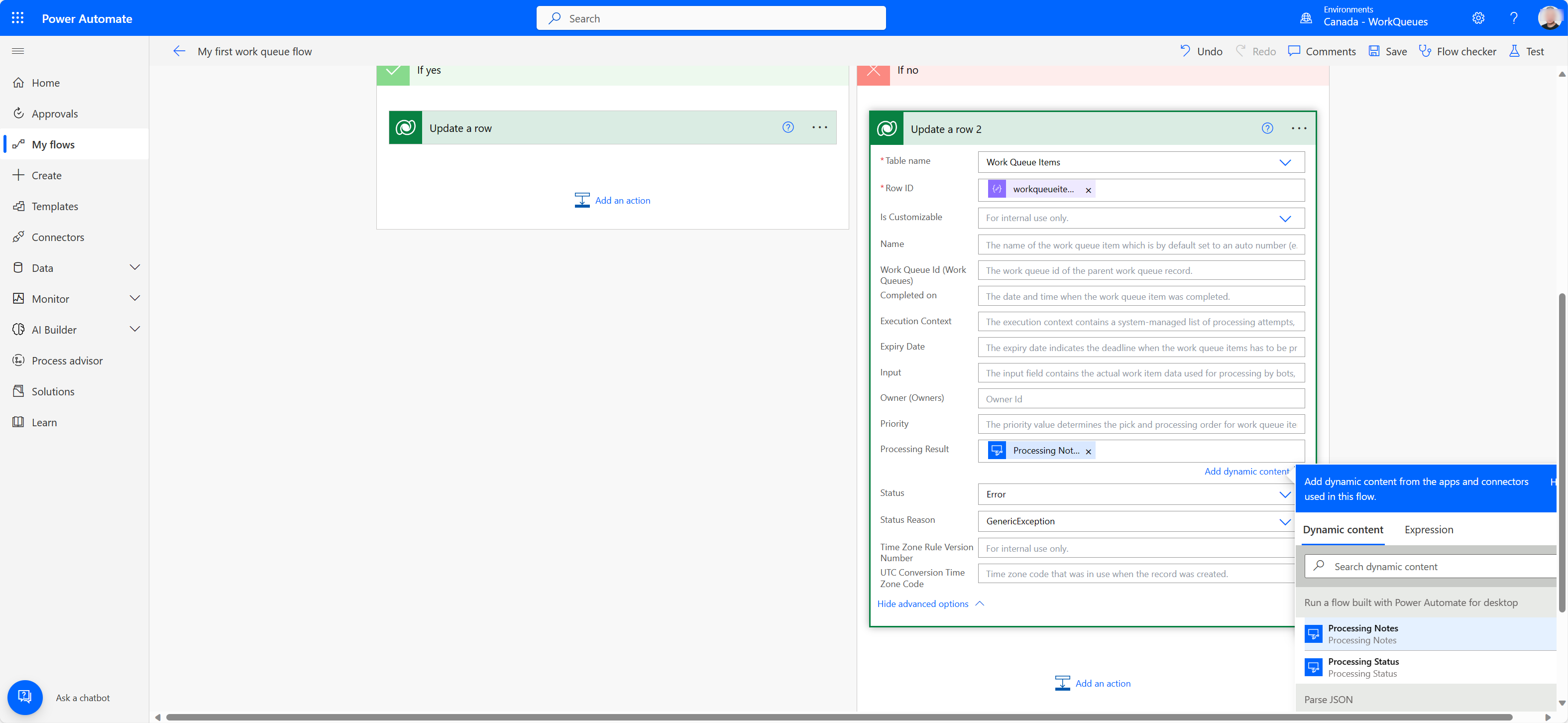 หากรายการคิวงานค้างอยู่ในสถานะการประมวลผลเนื่องจากโฟลว์เดสก์ท็อปไม่เสร็จสมบูรณ์ ให้ใช้โฟลว์ระบบคลาวด์เพื่อดึงและอัปเดตรายการคิวงาน