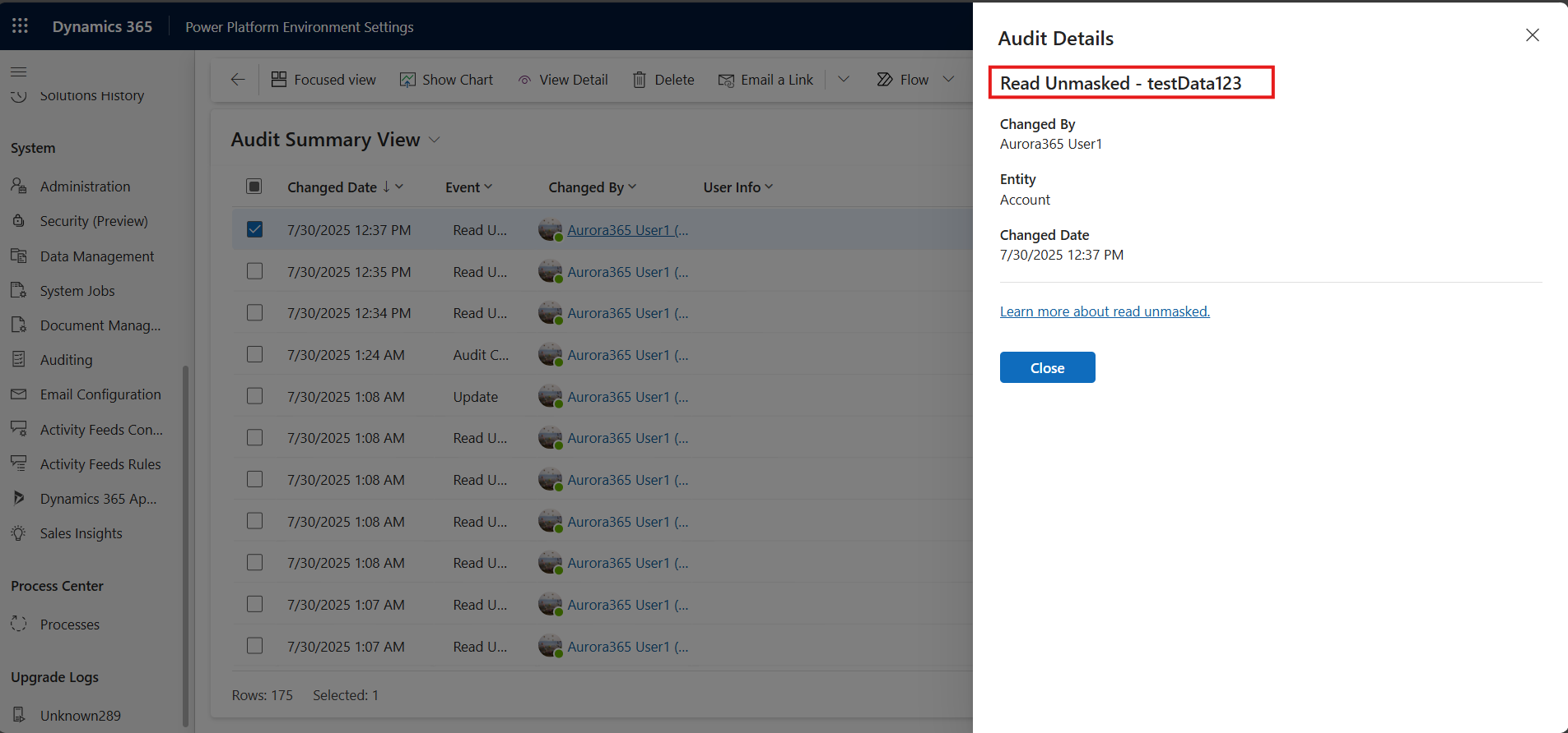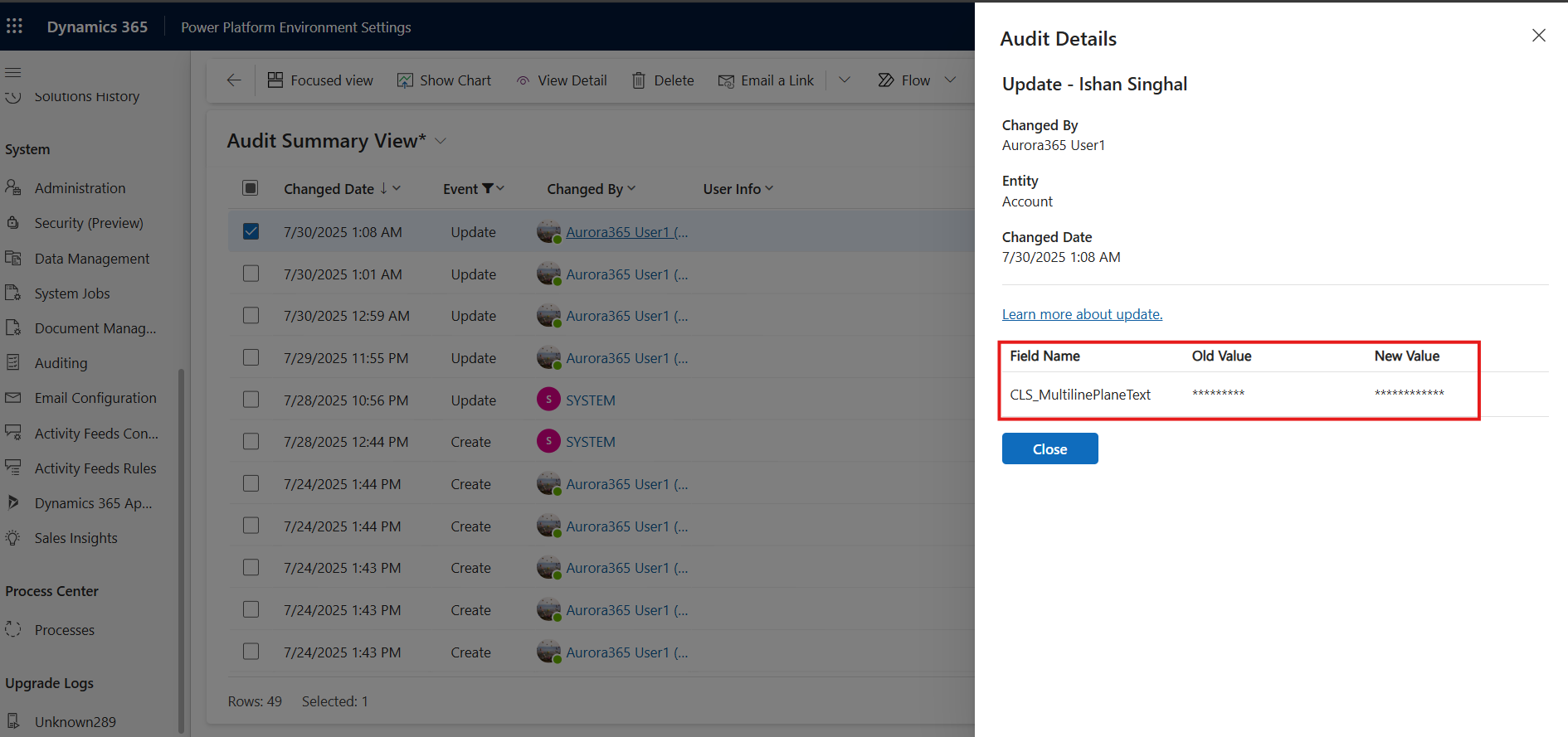 บันทึกการตรวจสอบแสดงค่าที่ปกปิดในเหตุการณ์การอัปเดตก่อนและหลัง ให้สิทธิ์การอ่านบันทึกการตรวจสอบแก่ผู้ใช้ที่ได้รับอนุญาตเท่านั้น