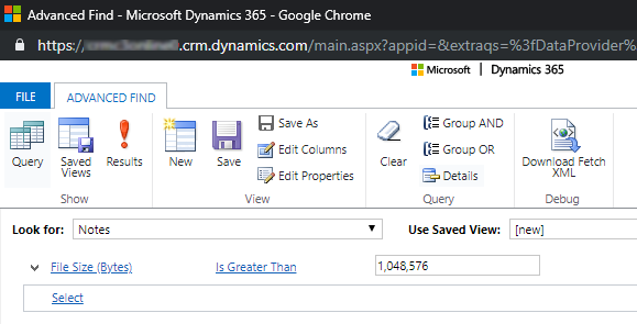 ขนาดแฟ้ม (ไบต์) – มากกว่า – ในกล่องข้อความ พิมพ์ค่าไบต์ เช่น 1,048,576 (ไบนารี 1 MB)