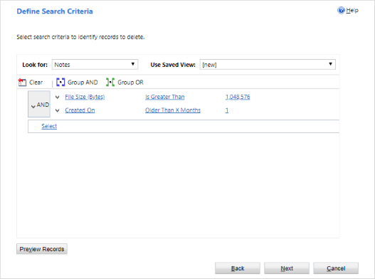 เมื่อคุณเปิดใช้งานการตรวจสอบแอปการมีส่วนร่วมของลูกค้า สร้างบันทึกการตรวจสอบเพื่อเก็บประวัติการตรวจสอบของเรกคอร์ด คุณสามารถลบบันทึกการตรวจสอบเพื่อเพิ่มเนื้อที่ว่างเมื่อไม่ใช้แล้ว