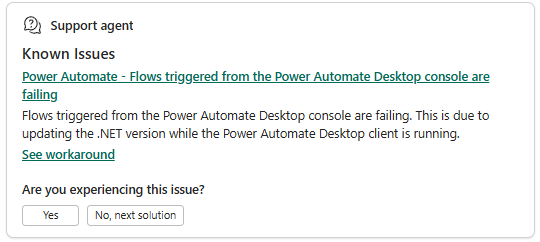 ปัญหาที่ทราบแล้วแสดงถึงข้อบกพร่องหรือปัญหาของผลิตภัณฑ์ที่ระบุโดยทีมวิศวกรรมผลิตภัณฑ์ มีรายละเอียดของปัญหาและการแก้ไขปัญหา ถ้าปัญหาใหม่ของคุณดูเหมือนว่าเกี่ยวข้องกับปัญหาที่ทราบแล้ว รายละเอียดจะแสดงในระหว่างเวิร์กโฟลว์การสนับสนุน คุณสามารถตรวจสอบรายละเอียดโดยการเลือกลิงก์ คุณสามารถค้นหาปัญหาที่ทราบแล้วและใช้งานได้บนหน้าปัญหาที่ทราบแล้วของฝ่ายสนับสนุนในศูนย์การจัดการ Power Platform เรียนรู้เพิ่มเติมใน ดูปัญหาที่ทราบแล้ว