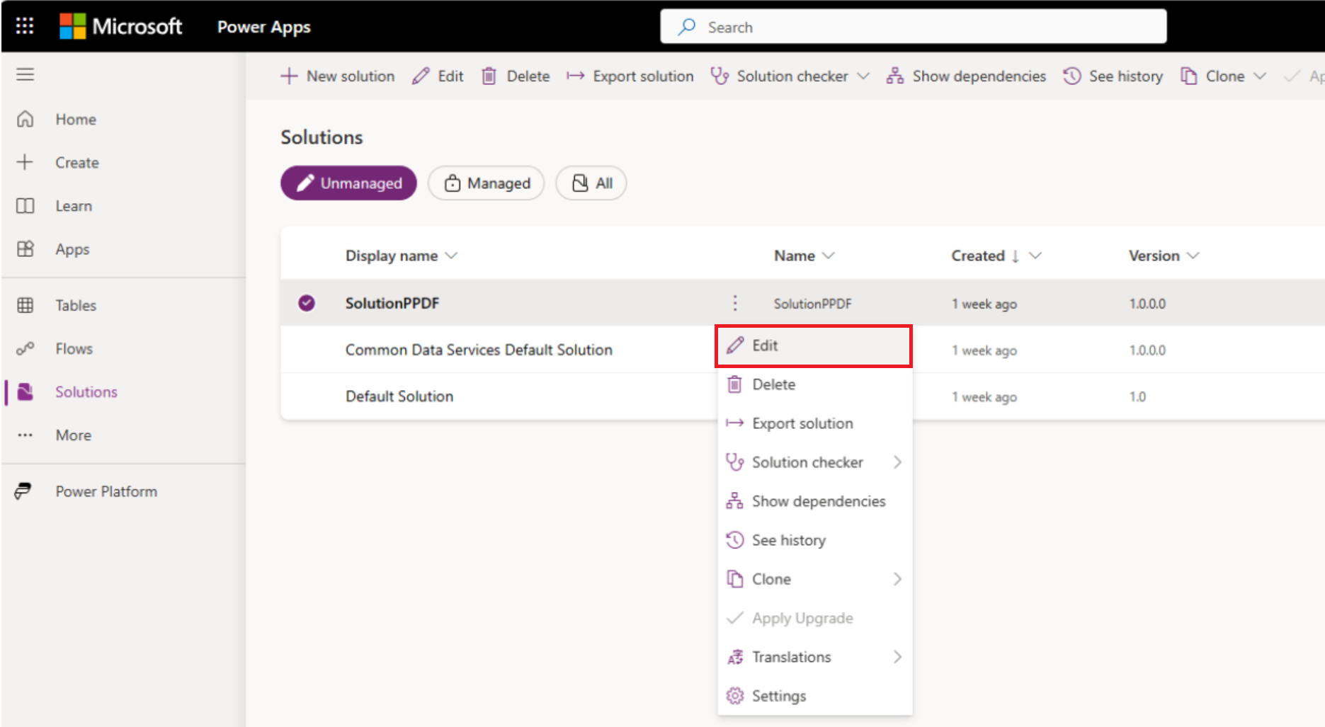 เลือกโซลูชันคุณจะเพิ่มกระแสข้อมูลของคุณและจากเมนูบริบทเลือก แก้ไข