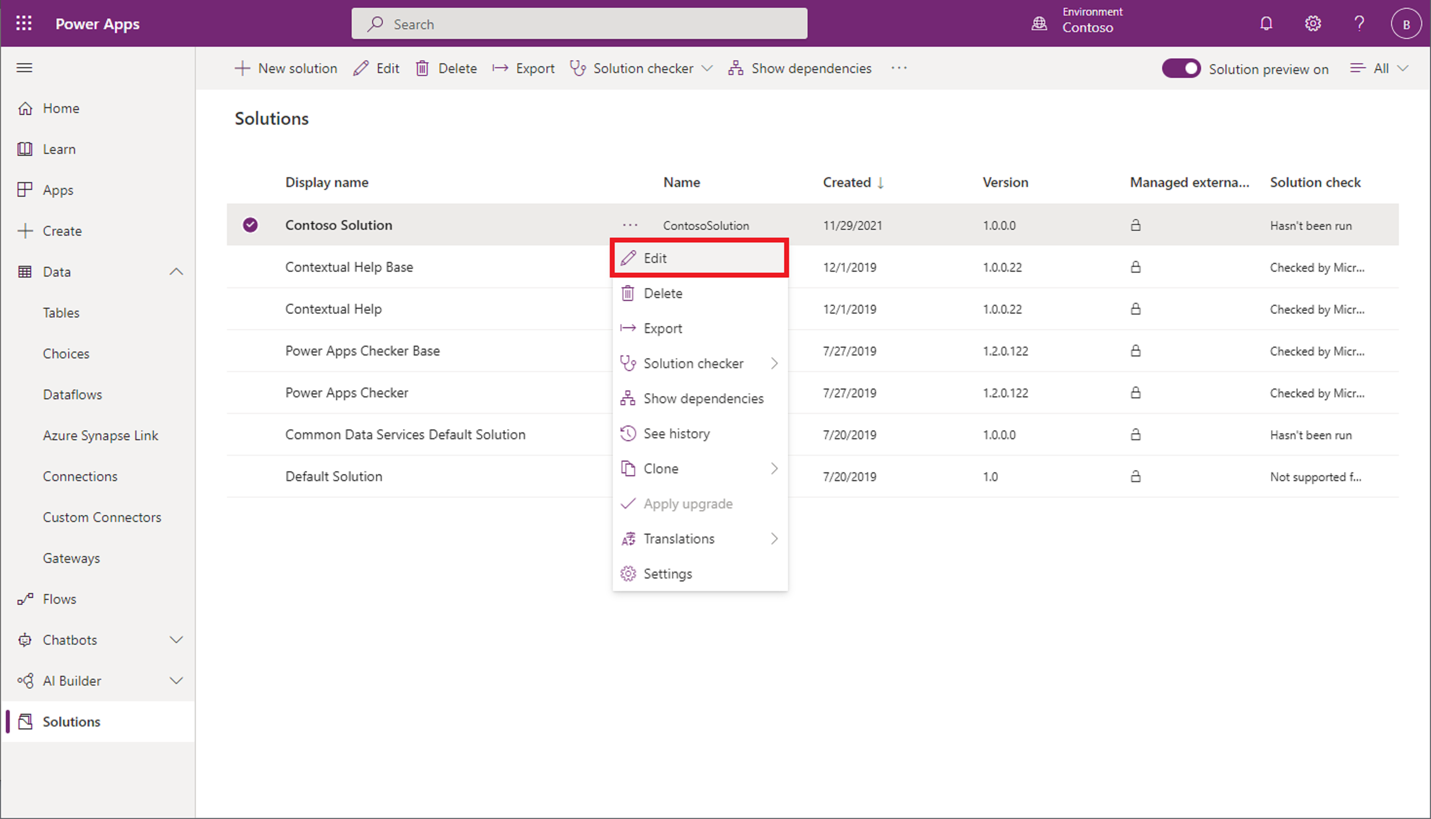 เลือกโซลูชันที่คุณต้องการเพิ่มกระแสข้อมูลใหม่ และจากเมนูบริบท เลือก แก้ไข