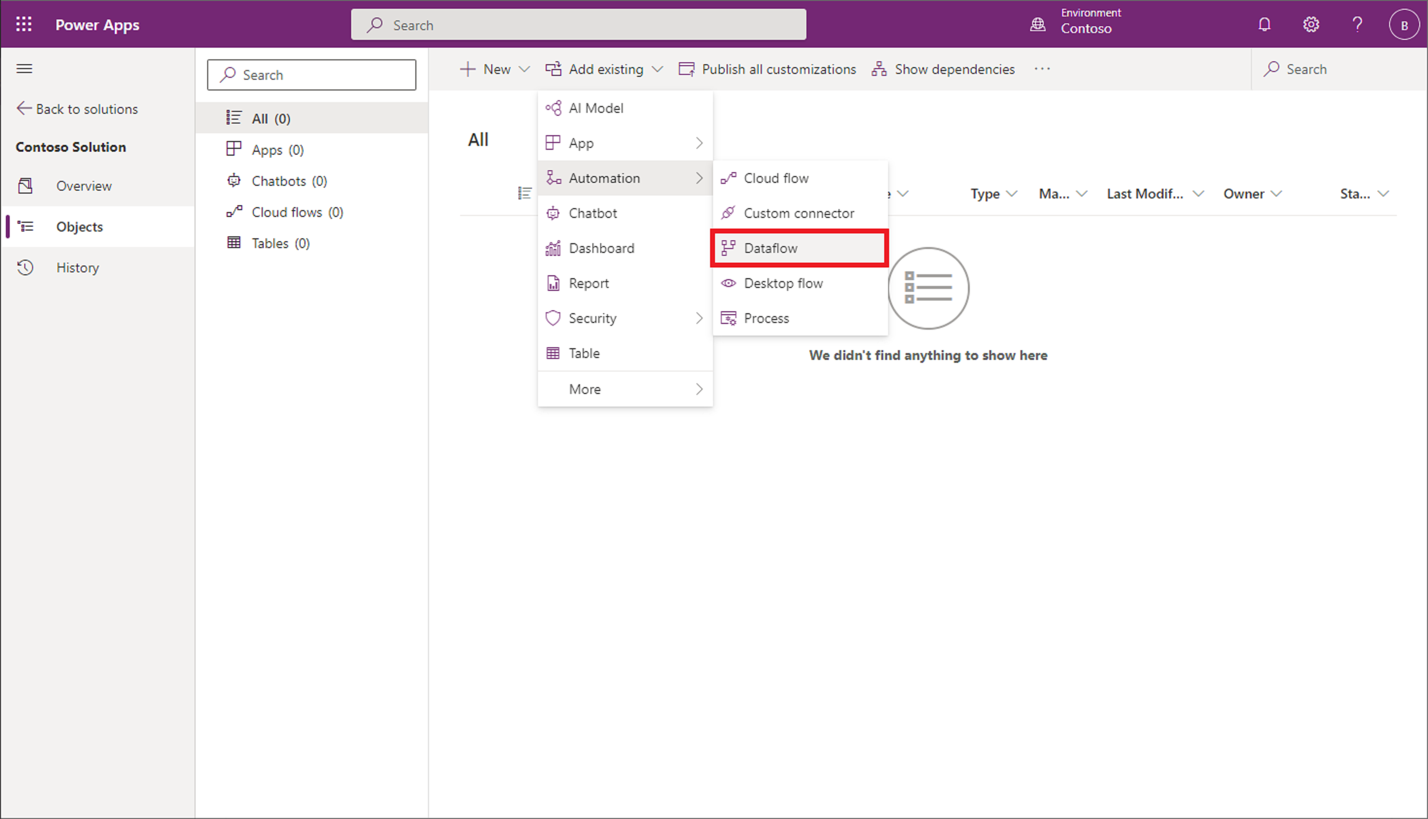 ตัวเลือก: ถ้ากระแสข้อมูลของคุณโหลดข้อมูลลงในตาราง Dataverse แบบกําหนดเอง ให้เพิ่มตารางแบบกําหนดเองลงในโซลูชันเช่นกัน