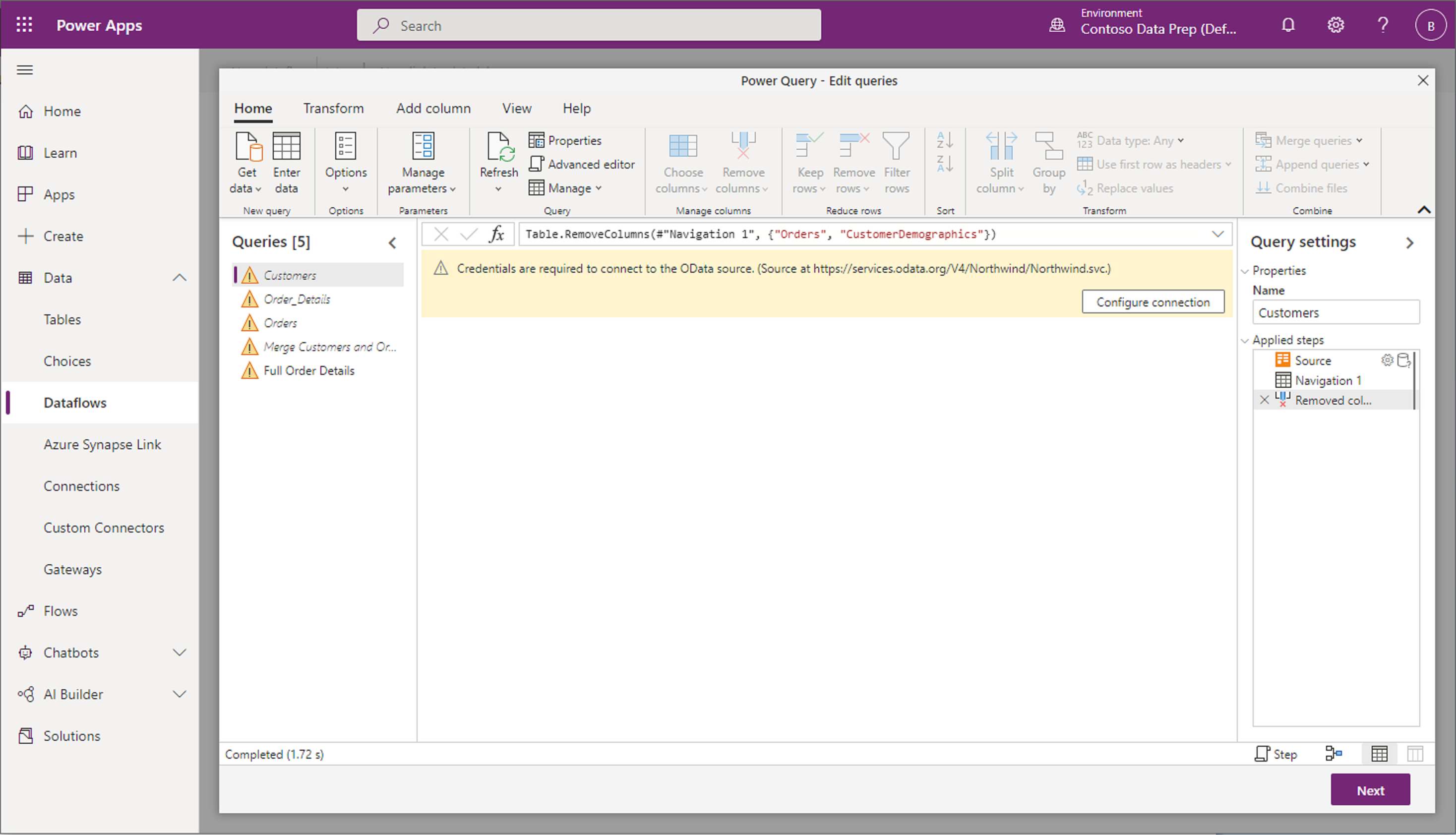 - กระแสข้อมูลไม่สนับสนุนบล็อกของการกําหนดค่าที่ไม่มีการจัดการ สําหรับข้อมูลเพิ่มเติม ไปที่ บล็อกการกําหนดค่าเองที่ไม่มีการจัดการในสภาพแวดล้อม Dataverse