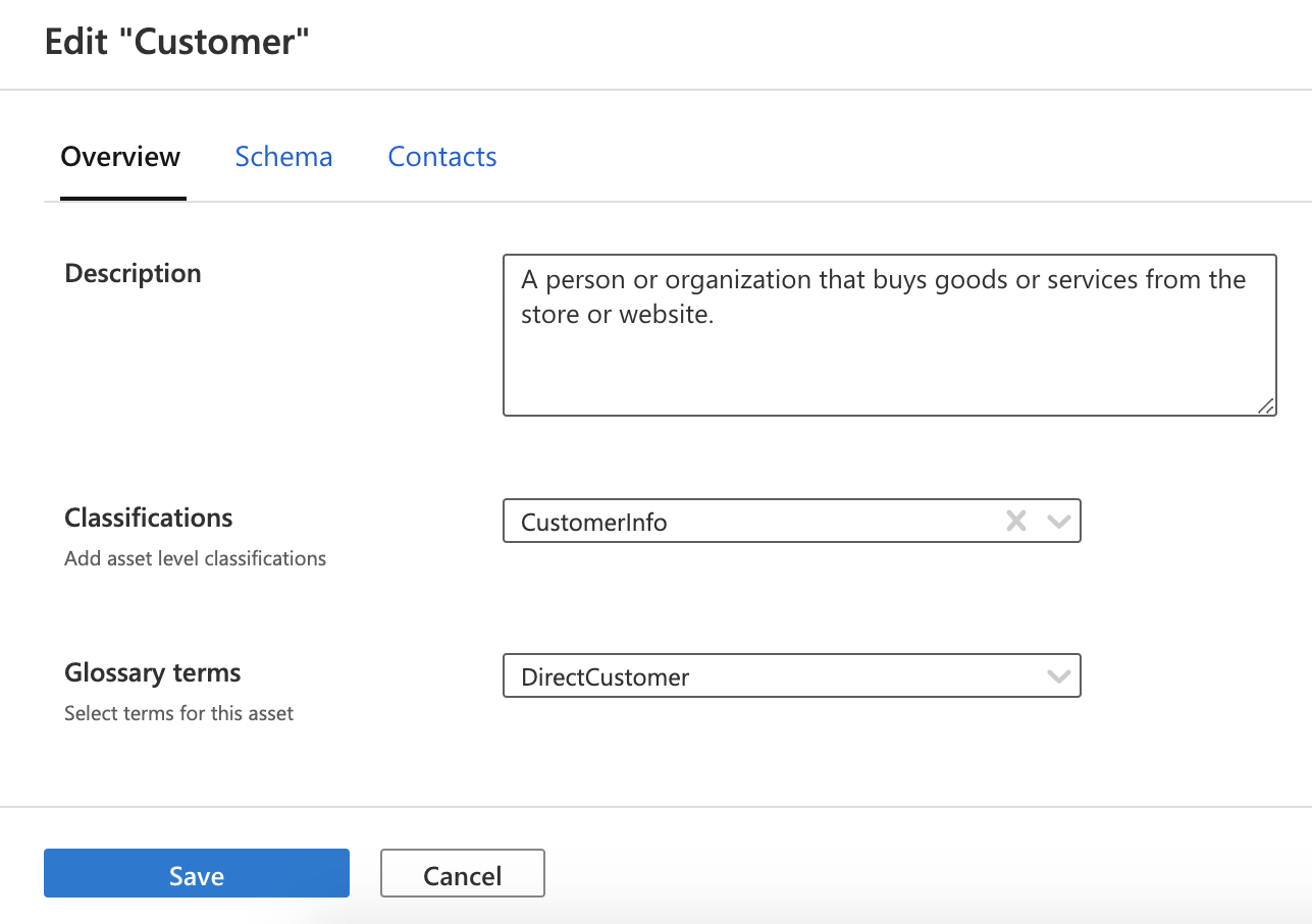 When Microsoft Purview scans your data sources, it doesn't automatically assign classifications to table assets (only on columns). For a table asset to have classifications, you must add them manually:
