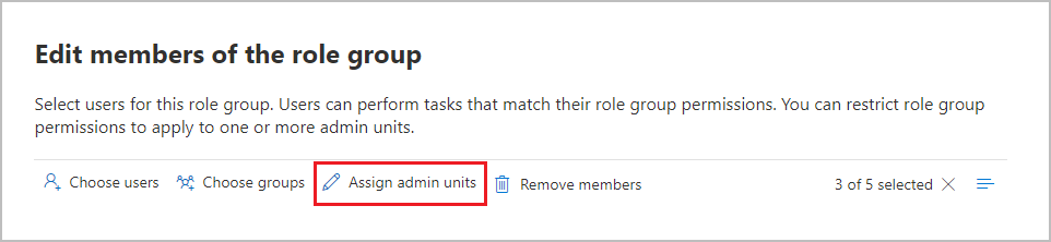 When you assign role groups, you can select individual members or groups, and then select the Assign admin units option to select administrative units that you define in Microsoft Entra ID: