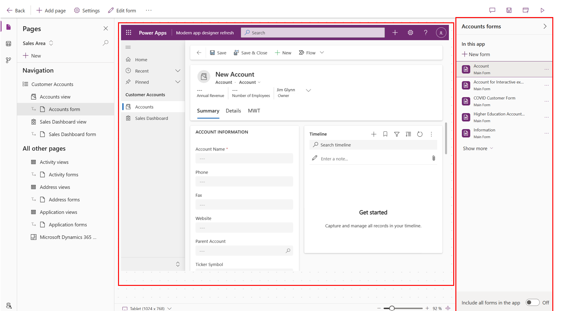 View this clickthrough demo to navigate through a model-driven app