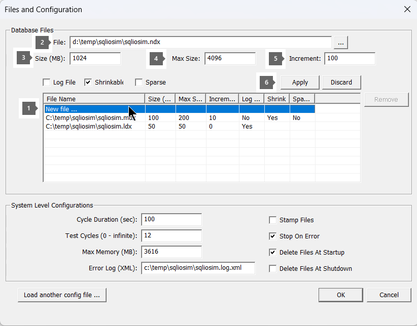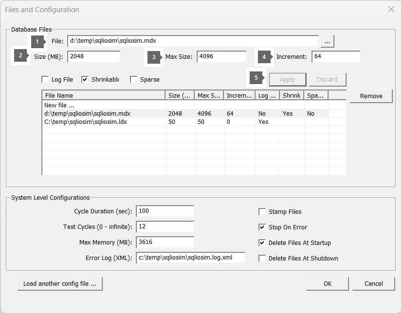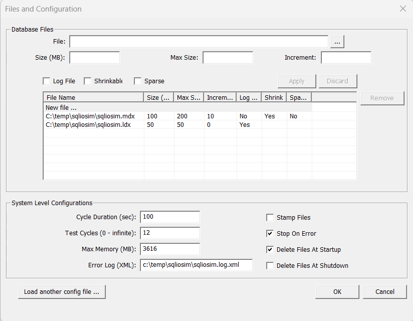 - Use the Files and Configuration dialog box after you run the SQLIOSim.exe file.