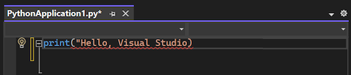 print("Hello, Visual Studio")Notice how Visual Studio applies different syntax coloration for the
