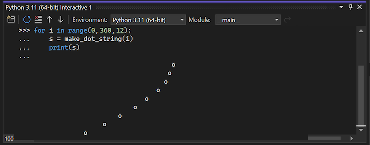 4. Repeat the process again for the make_dot_string function. Be sure to send both lines of the function. After you send the complete code for the function, enter a new line in the Interactive Window.