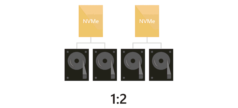 NVMe + SSD + HDD NVMe SSD + HDD Read + Write for HDD, Write-only for SSD