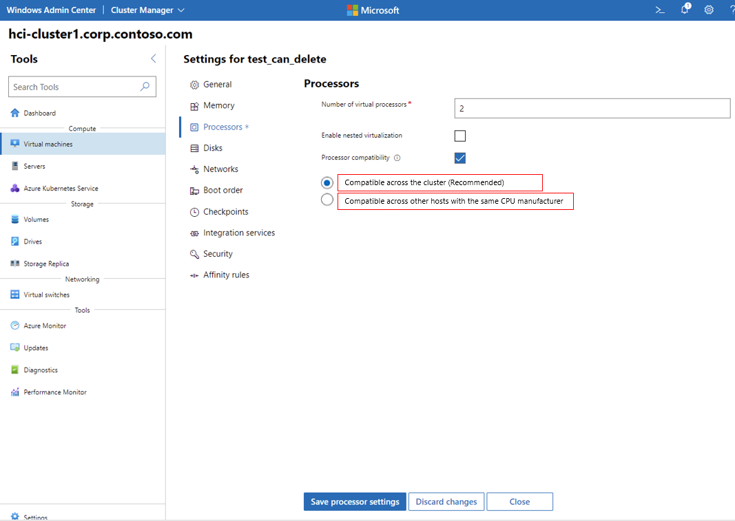 This article explains how to configure processor compatibility mode for a VM using Hyper-V Manager, PowerShell, or Windows Admin Center.
