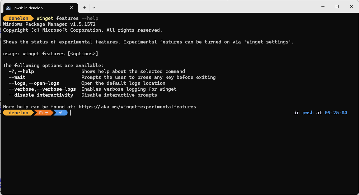 The features command of the winget tool displays a list of the experimental features available with your version of the Windows Package Manager.