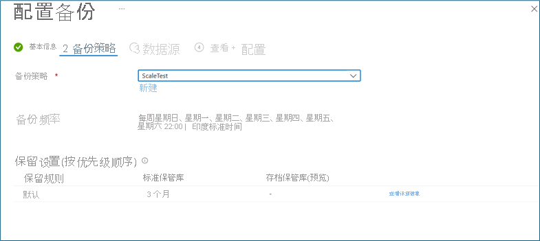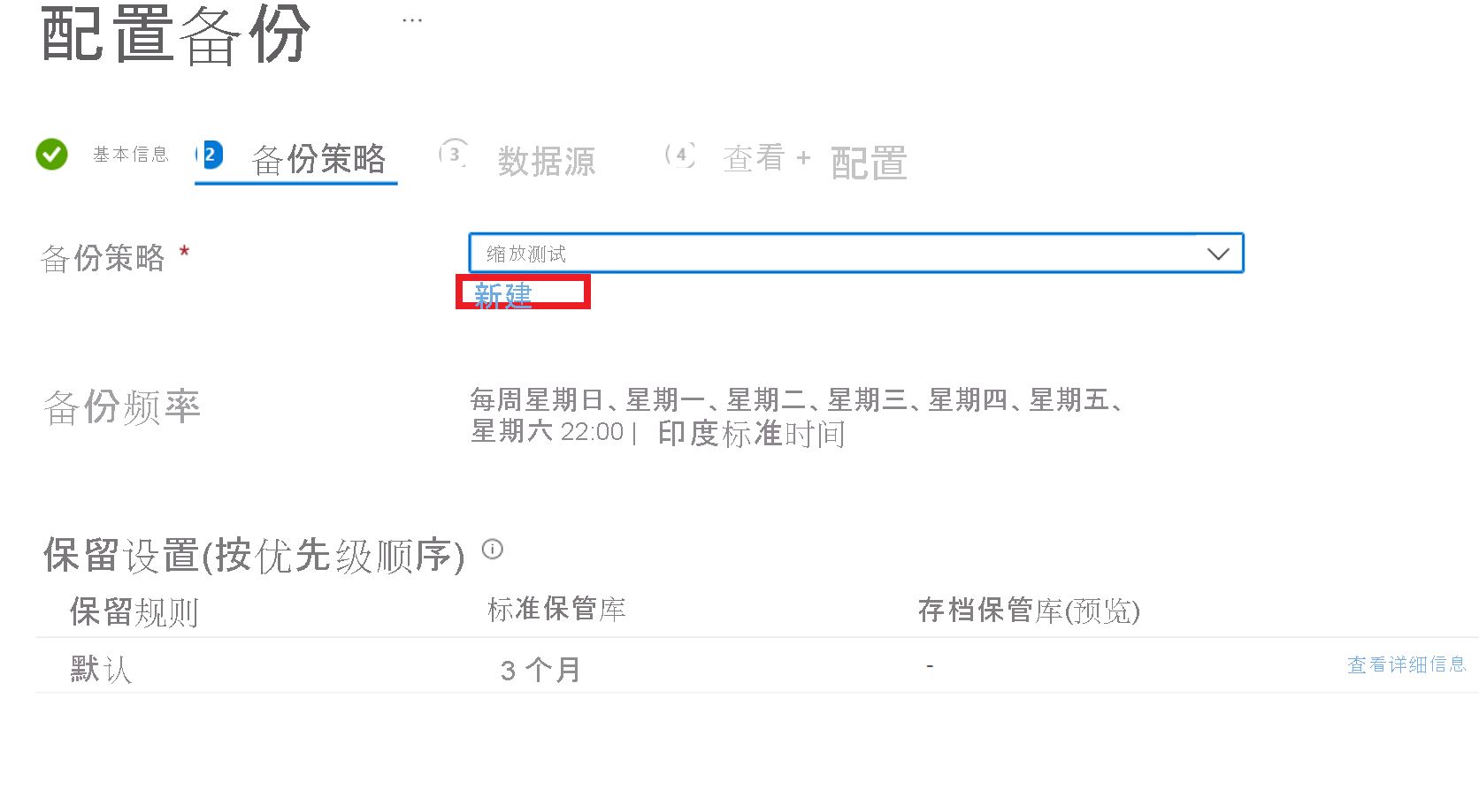选择创建的备份策略,该策略定义了备份计划和保留期。
