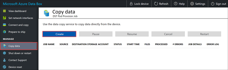 取消复制作业不会删除作业期间已复制到设备的任何数据。 若要删除已复制到 Data Box 设备的数据,请重置设备。