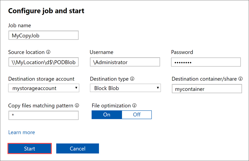 选择“开始”。 随后会验证输入,如果验证成功,则启动某个作业。 启动该作业可能需要花费几分钟时间。