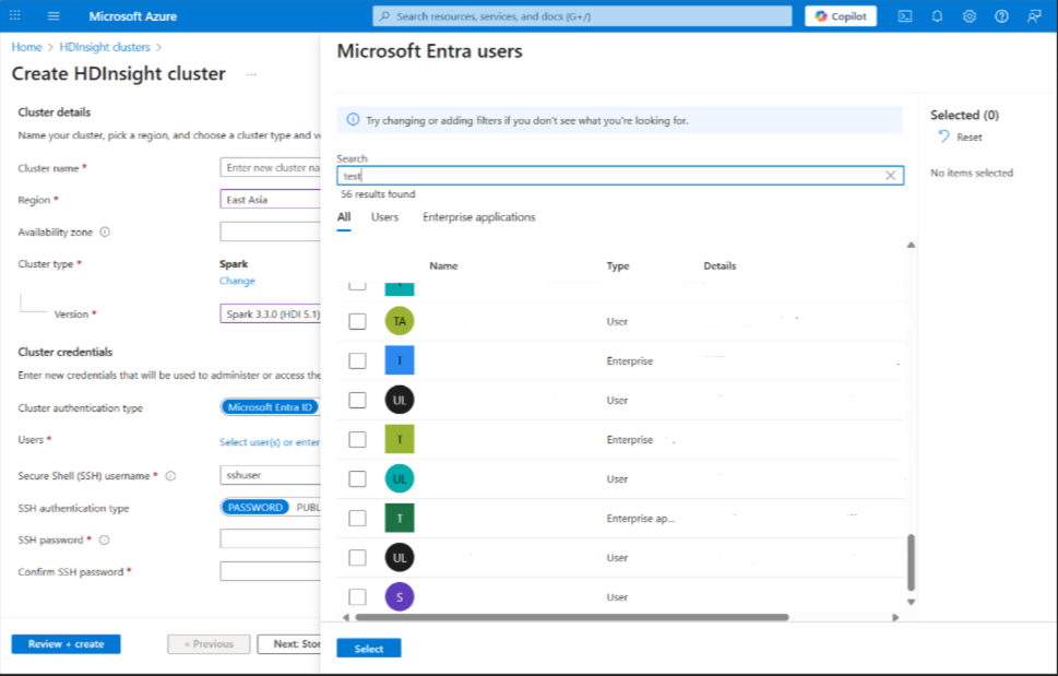 若要在创建 HDInsight 群集时设置Microsoft Entra ID 身份验证,请执行以下步骤: