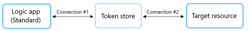 概念图显示了逻辑应用和令牌存储之间的第一个身份验证连接以及令牌存储和目标资源之间的第二个连接。