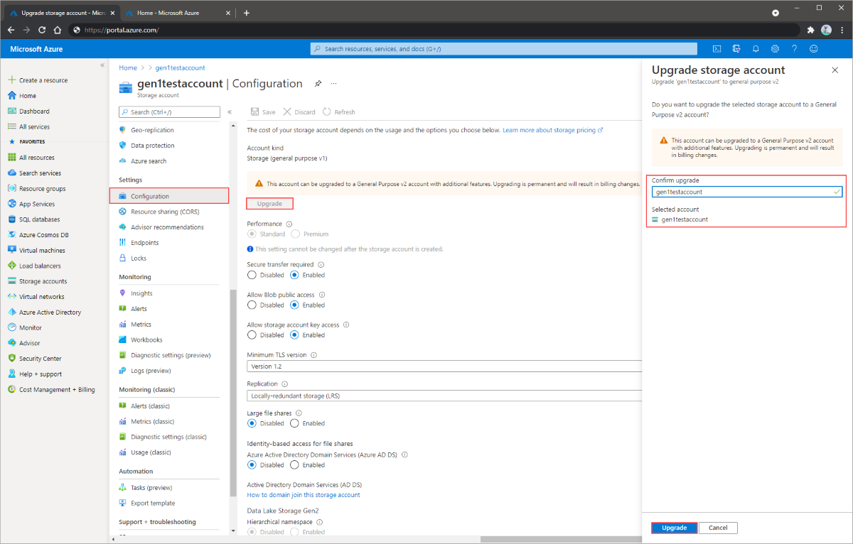 若要将常规用途 v1 或 Blob 存储帐户升级到常规用途 v2 帐户,请使用 Azure 门户、PowerShell 或 Azure CLI。