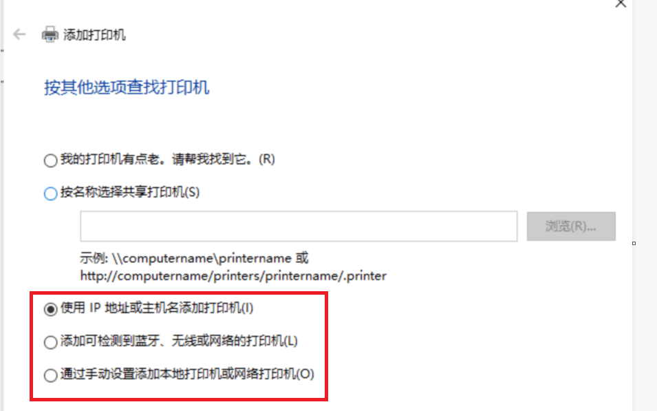 搜索不出来的话,请尝试使用其他方法添加打印机: