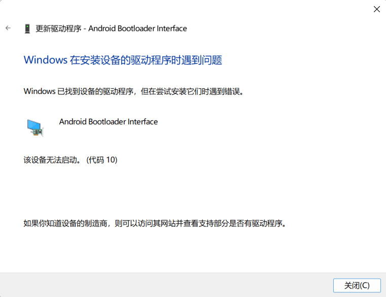 关于此报错信息,您可以参考链接该设备无法启动。(代码10) - Microsoft Community中提供的解决方案。
