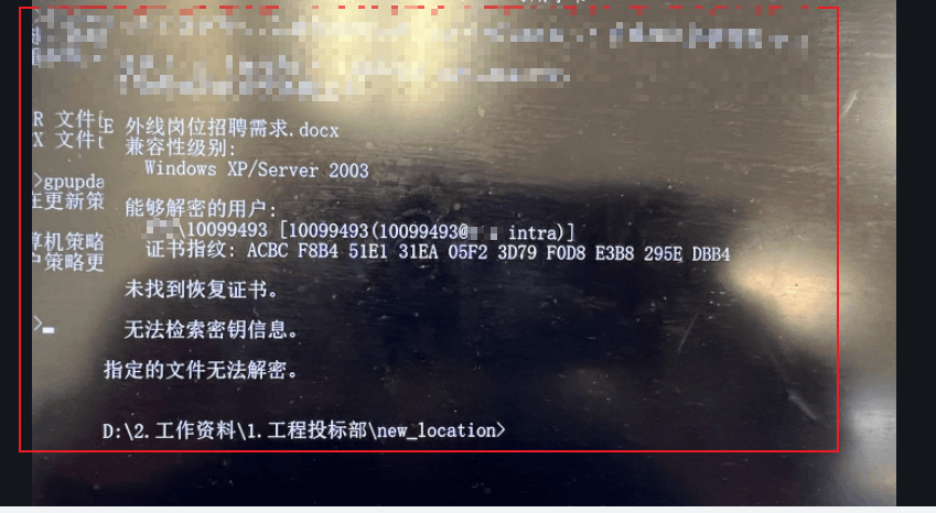 在域账户下,某个文件通过windows自带的加密方式进行了加密,但在某天该域账户好像突然变了。