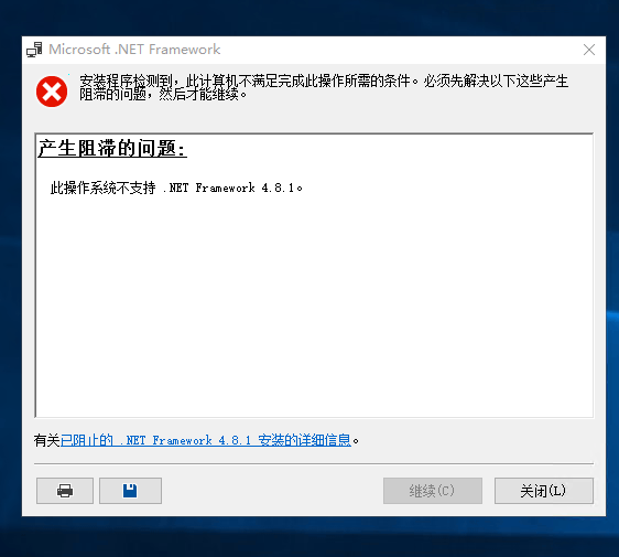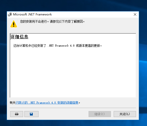如果自动安装仍然失败,您可以尝试手动安装 .NET Framework 4.8。从 Install the .NET Framework on Windows 10 - .NET Framework | Microsoft Learn下载安装程序并手动运行它。