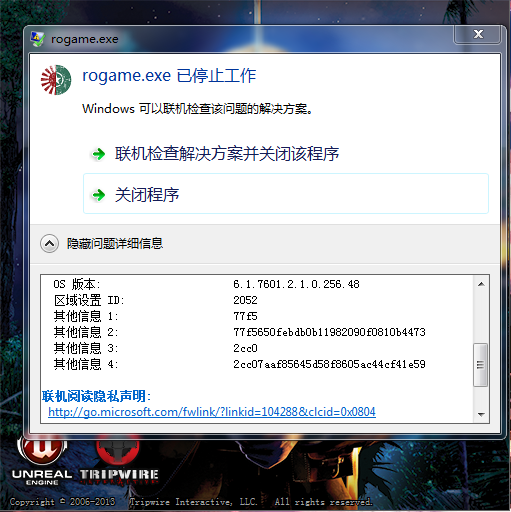 您的问题是由于rogame.exe这个可执行文件本身出现错误异常所导致,并非系统所致。