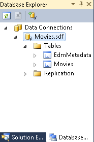如果双击 Movies.sdf 时收到错误,请确保已安装 SQL Server Compact 4.0(运行时 + 工具支持)。 (有关软件的链接,请参阅本教程系列第 1 部分中的先决条件列表。如果立即安装版本,则必须关闭并重新打开 Visual Web 开发人员。